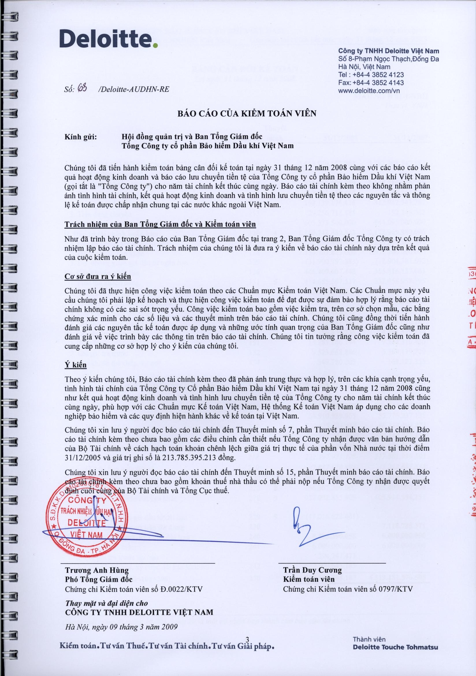 Báo cáo tài chính của Kiểm toán viên năm 2008 (đã được kiểm toán)