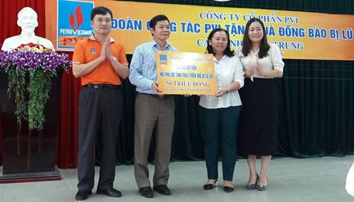 Thông qua Hội LHPN tỉnh Thừa Thiên Huế, Công ty cổ phần PVI đã trao tặng 50 suất quà dành cho các phụ nữ nghèo ngập lũ ở 3 huyện Hương Trà, Phong Điền và Quảng Điền.