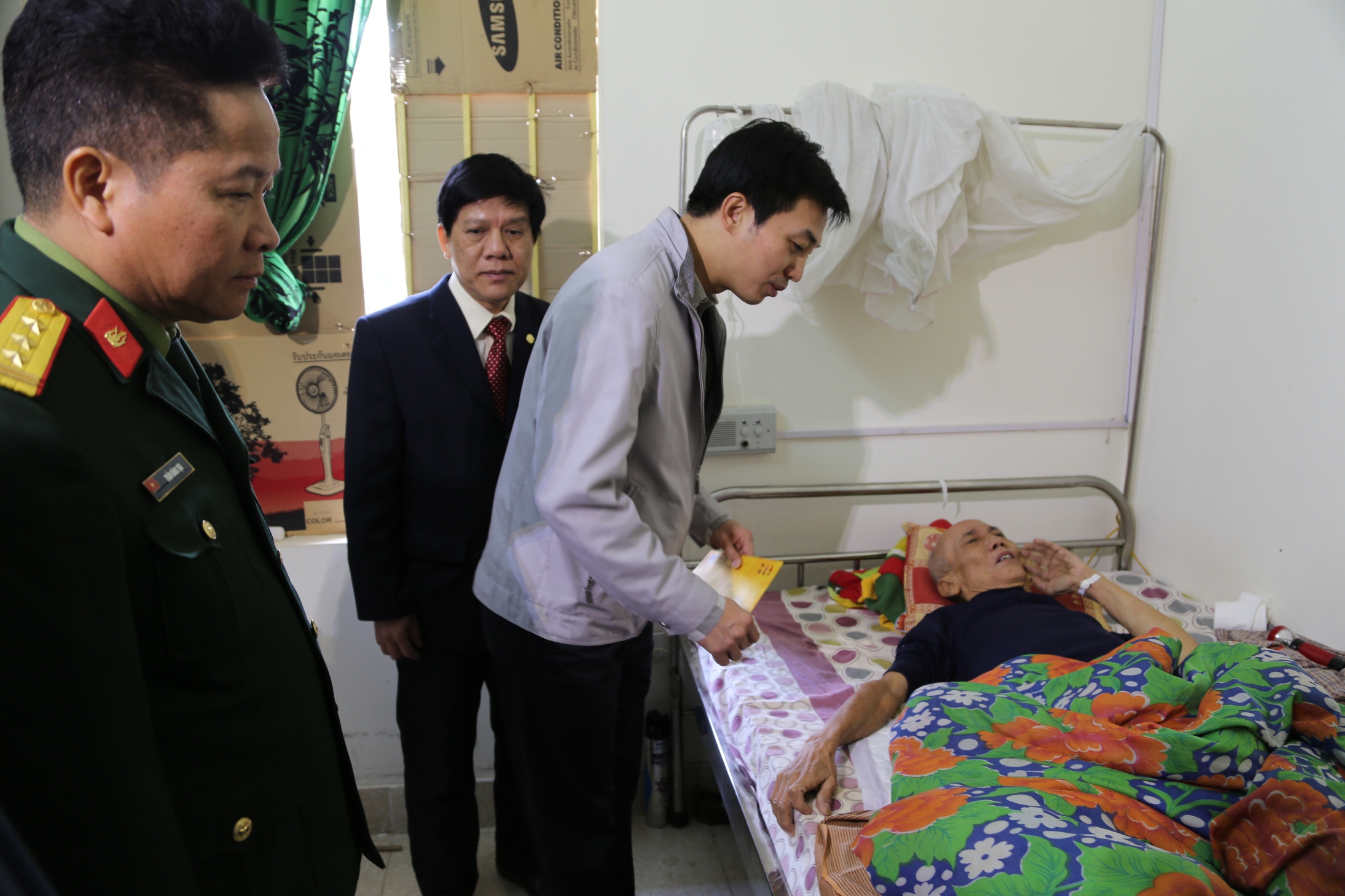 Đại diện PVI và Nhà hát Ca múa nhạc Quân đội đến nhà thăm hỏi động viên các thương bệnh binh nặng tại Trung tâm