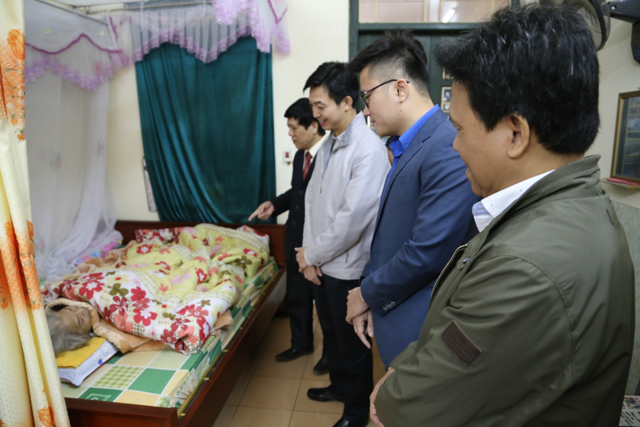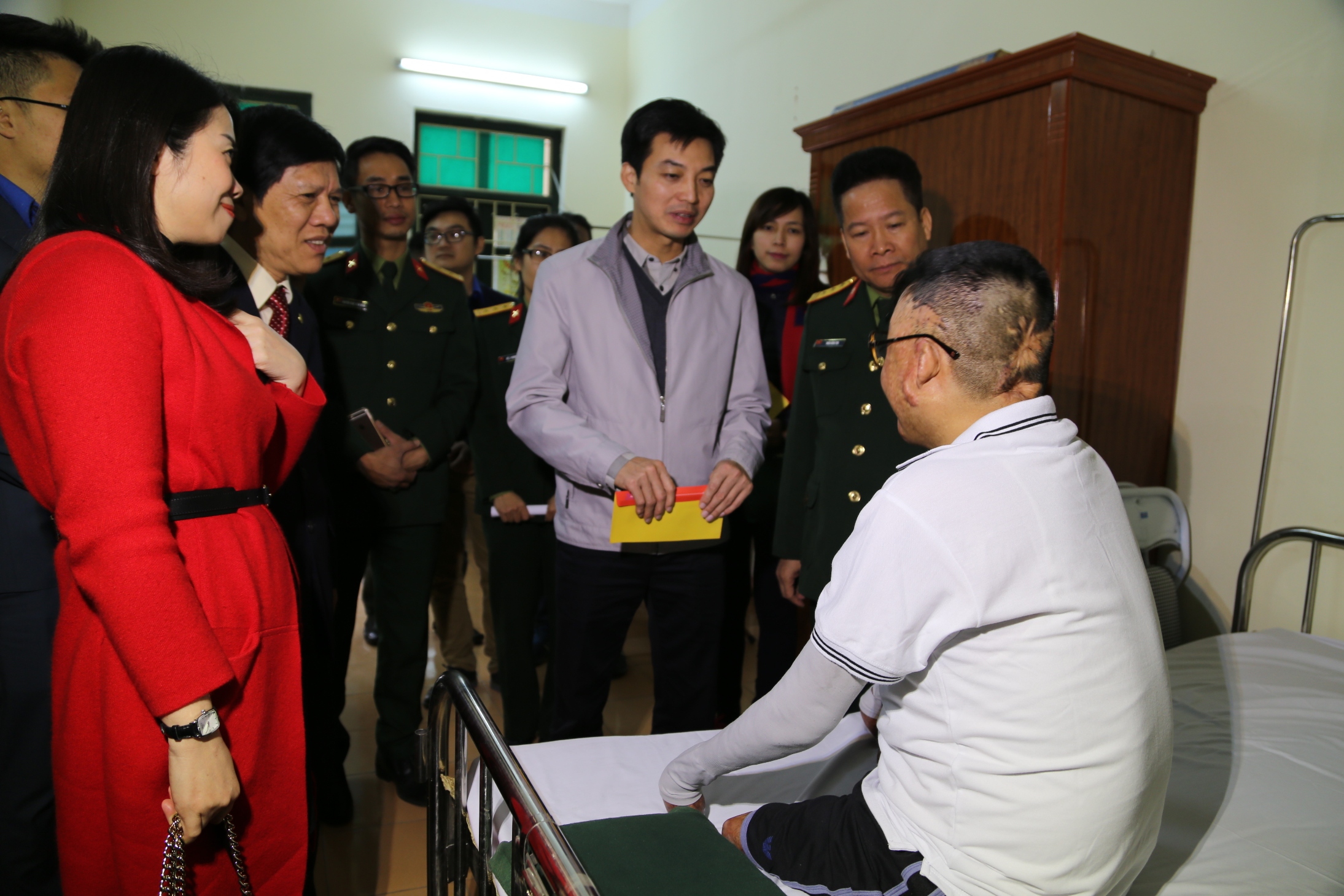 Đến Trung tâm, đoàn PVI và Nhà hát Ca múa nhạc Quân đội đã đi thăm hỏi, động viên và trao quà tại nhà cho 10 đồng chí thương binh nặng không có khả năng di chuyển. Khi bước đến từng nhà các thương bệnh binh, các thành viên trong đoàn đều xúc động, cảm phục trước những tấm gương anh hùng chiến đấu để bảo vệ Tổ quốc và không giấu nổi nghẹn ngào khi chứng kiến di chứng của những vết thương chiến đấu gây ra những cơn đau nhức nhối cho các bác, các anh, cho người thân gia đình của họ.