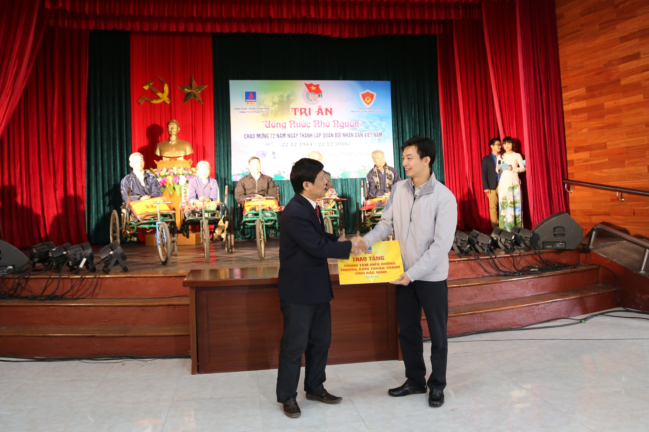 Nhân kỷ niệm 72 năm ngày thành lập Quân đội Nhân dân Việt Nam (22/12/1944 – 22/12/2016), để tỏ lòng tri ân, đền đáp những công ơn to lớn của các thế hệ bộ đội Cụ Hồ đã cống hiến xương máu giành độc lập tự do cho dân tộc, ngày 17/12/2016, Công đoàn – Đoàn thanh niên PVI phối hợp với Đoàn thanh niên Nhà hát Ca múa nhạc Quân đội đã tổ chức chương trình Tri ân “Uống nước nhớ nguồn” tại Trung tâm Điều dưỡng Thương binh Thuận Thành, xã Ninh Xá, huyện Thuận Thành, tỉnh Bắc Ninh.