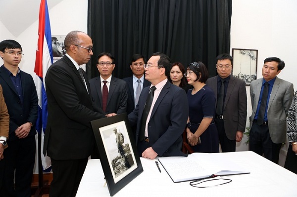 Sáng ngày 30/11 tại Đại sứ quán Cuba (Hà Nội), đoàn Tập đoàn Dầu khí Quốc gia Việt Nam do Chủ tịch HĐTV Tập đoàn Nguyễn Quốc Khánh dẫn đầu đã tới viếng đồng chí Fidel Castro Ruz, nguyên Bí thư thứ nhất Ban Chấp hành Trung ương Đảng Cộng sản Cuba, nguyên Chủ tịch Hội đồng Nhà nước và Hội đồng Bộ trưởng nước Cộng hòa Cuba.