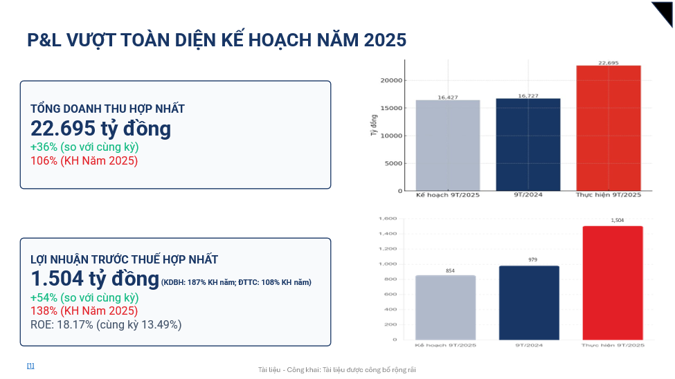 Cùng với việc liên tiếp được ghi nhận ở hạng mục quản trị công ty, PVI cũng đang duy trì phong độ kinh doanh tích cực. Kết thúc 9 tháng đầu năm 2025, doanh thu hợp nhất của PVI đạt 22.695 tỷ đồng, hoàn thành 106% kế hoạch năm; lợi nhuận trước thuế hợp nhất đạt 1.504 tỷ đồng, hoàn thành 138% kế hoạch năm.