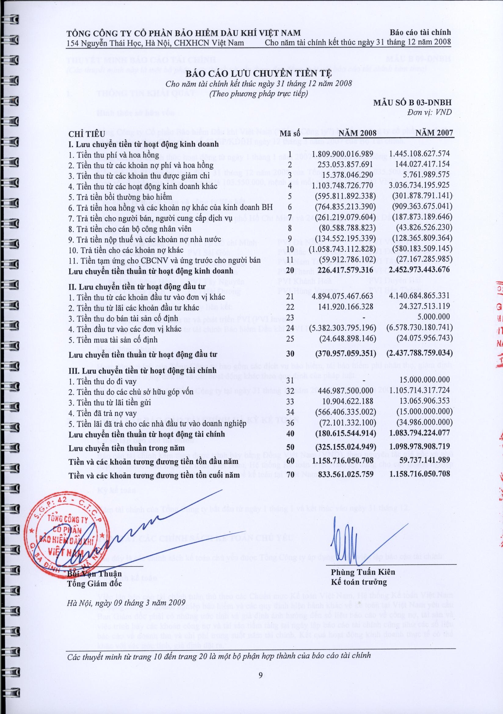 Thuyết minh báo cáo tài chính năm 2008 (đã được kiểm toán)