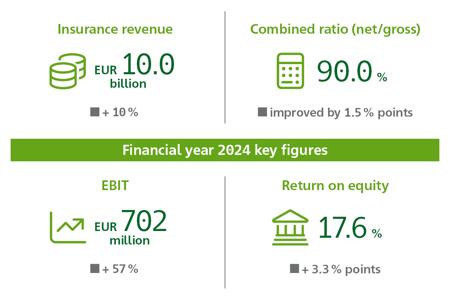 Công ty bảo hiểm doanh nghiệp và bảo hiểm chuyên biệt HDI Global SE đã báo cáo kết quả tài chính tích cực cho năm 2024 với mức tăng trưởng mạnh mẽ về cả doanh thu và lợi nhuận. Các động lực chính là tăng trưởng trong hoạt động kinh doanh mới và một phần là điều chỉnh giá liên quan đến lạm phát. Tỷ lệ kết hợp cả năm đạt 90% (năm tài chính 2023: 91,5%). Tổng doanh thu bảo hiểm đạt 10,0 (9,1) tỷ EUR, lần đầu tiên đạt hai con số. Lợi nhuận hoạt động (EBIT) tăng lên 702 (446) triệu EUR và Lợi nhuận trên vốn chủ sở hữu (RoE) tăng 3,3% lên 17,6% (14,3%).