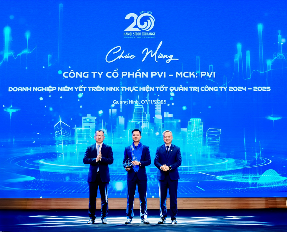Chiều ngày 07/11/2025, tại Lễ công bố Giải thưởng Quản trị công ty tốt năm 2024–2025 do Sở Giao dịch Chứng khoán Hà Nội (HNX) tổ chức, Công ty Cổ phần PVI (mã chứng khoán: PVI) tiếp tục được xếp hạng trong Top 10 doanh nghiệp niêm yết có thực hành quản trị công ty tốt nhất. Đây là năm thứ ba liên tiếp PVI được HNX vinh danh ở hạng mục này.